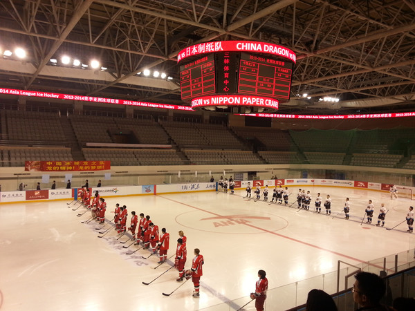 一番酣畅淋漓的冰上体验之后,我们组织参加活动的朋友一同在冰场现场观摩了在中国龙之队和日本制纸队之间展开的激烈的冰球比赛。很多朋友都表示,平时只是在电视里见过这项运动,觉得冰球运动非常刺激和激烈,对抗性极强,但是现场观摩还是第一次。现场观看的感受远比电视里看到的刺激得多,孩子们也看的欢呼雀跃,不亦乐乎。